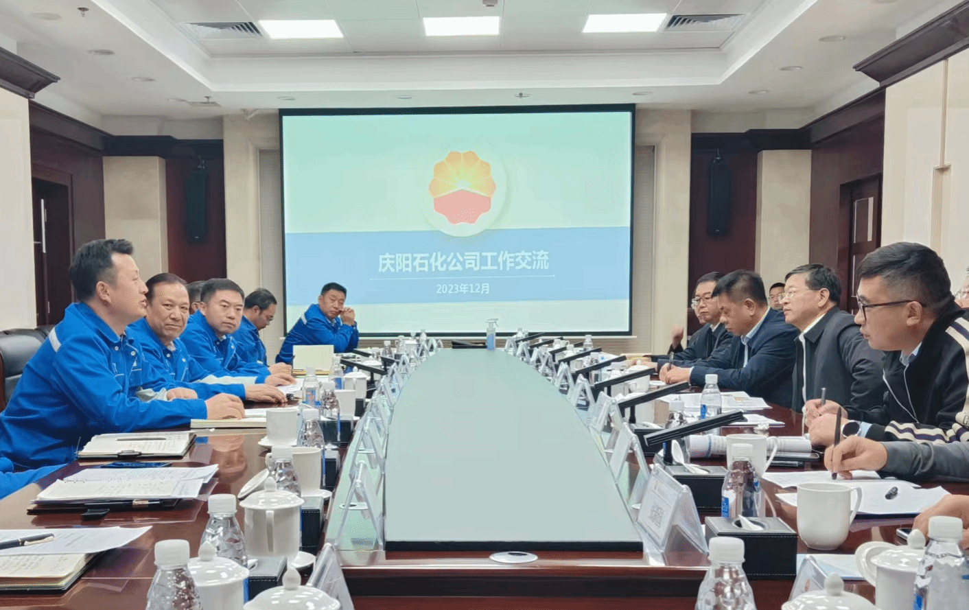 在中国石化庆阳石化公司,学校与公司共同召开科技研讨交流会,庆阳石化公司执行董事、党委书记桑运超,总经理、党委副书记何明川出席会议。