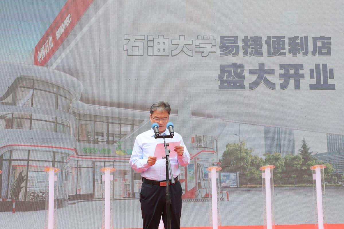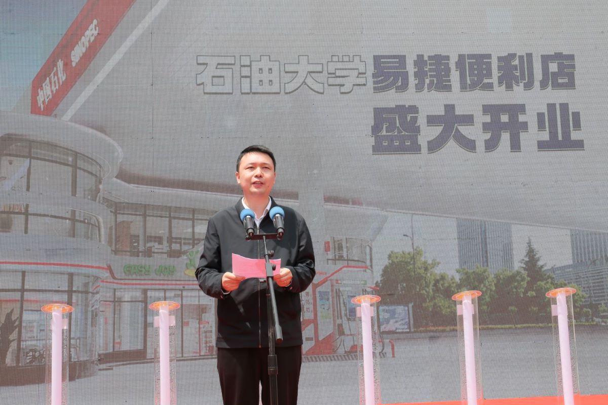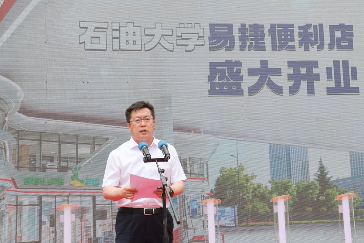 钱建华首先代表学校致辞。他简要介绍学校作为新中国第一所石油工业学校矢志能源报国,助力行业发展和区域振兴总体情况,以及近年来深入落实辽宁全面振兴新突破三年行动要求,全力推进学校核心指标突破,特别是通过深化政产学研协同联动,与中国石化、抚顺市为代表的政府企业达成战略合作取得的诸多成绩。他表示,此次中国石化选定我校设立辽宁石油首家易捷校园旗舰便利店是双方深厚渊源的具体体现,也是对学校的充分信赖和高度肯定。学校愿以此为契机,与中国石化强化协同创新,加强互通互融,推动合作共赢,共同培育新质生产力,实现行业一流人才共育、科研一流平台共建、高水平一流成果共创,在谱写中国式现代化辽宁新篇章和推动国家能源事业高质量发展中展现更大担当和作为。