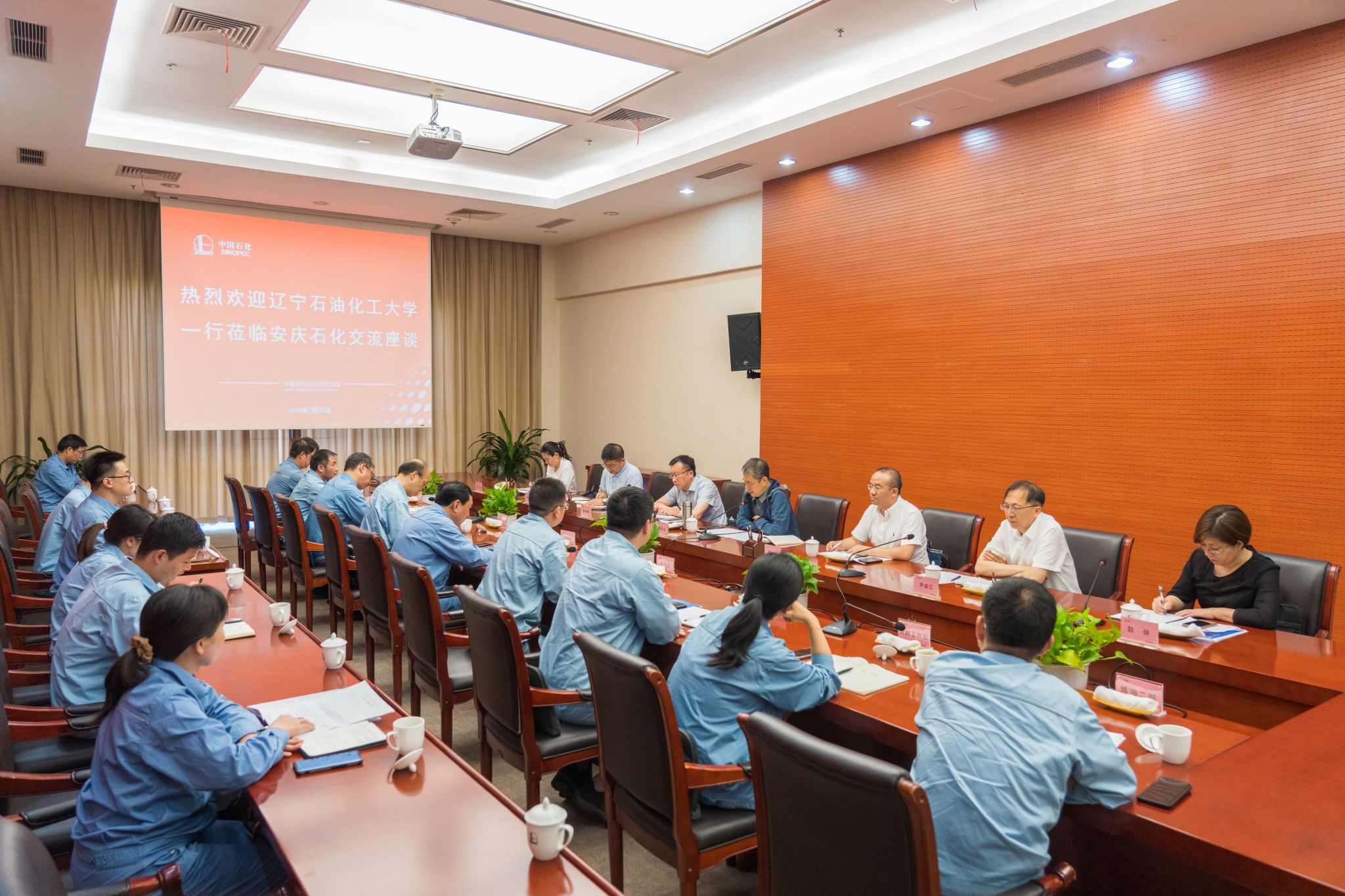 郭长义一行首先参观了安庆石化炼化区中心控制大厅和厂史馆,随后双方座谈交流。刘晓华对我校一行的到来表示热烈欢迎,对学校长期以来向安庆石化输送了大量优秀毕业生、助力企业发展表示感谢。我校有近百名校友在安庆石化效力,十余人进入中层以上技术和管理队伍。刘晓华还介绍了安庆石化的生产和经营以及未来转型发展情况,他非常希望有更多“抚油”学子加入安庆石化。郭长义介绍了此行目的在于专程拜访企业、看望广大校友、寻求新的合作,同时热烈祝贺安庆石化建厂50周年。他高度评价安庆石化为经济社会发展贡献重大、科技立企强企快速发展、思想文化建设特色鲜明成效显著,并衷心感谢安庆石化历年来对我校毕业生的培养。郭长义主要从锚定建设特色鲜明的一流高水平应用型大学一个目标、深化“五项改革”、实施“四大战略”三个层面介绍了学校,并介绍了学校近年来在辽最低录取线不断攀升、毕业生就业率始终居辽宁省前茅为标志的显著办学成绩,以及我校将在博士学位授予单位争列、国家级科学技术奖、国家级教学成果奖三个方面寻求突破的攻坚目标。郭长义希望与安庆石化在毕业生吸纳、科研合作、员工培训等方面进一步深化合作,并诚挚邀请刘晓华和各位领导常来学校视察走访、商谈合作。刘晓华给予热情回应,表示将加大与学校的合作力度,并约定于九月来校签订合作协议。公司党委组织部、人力资源部、发展规划部、生产计划部、炼油事业部、党群工作部负责人出席,我校优秀校友代表李胜利、徐思伟、范宜俊、赵云怒、程驰等参加座谈。周洪波、李胜利、徐思伟等分别从企业和校友角度畅谈了入职后成长体会,并为母校进一步发展壮大提出建议。