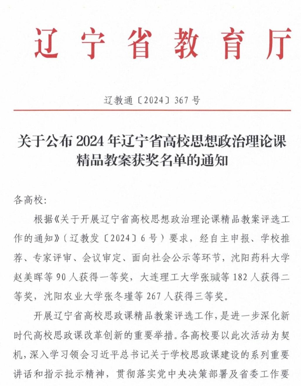 为充分发挥思政课落实立德树人根本任务的关键课程作用,全面提升高校思政课教学质量和水平,辽宁省教育厅举办了“辽宁省高校思想政治理论课精品教案评选”活动。