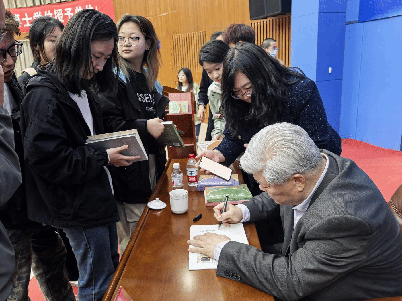 活动现场还设置了互动交流与签名赠书环节。师生就“如何判断自己阅读力的段位”、“数字时代的阅读选择” 等热点问题积极提问。聂震宁先生给予了细致解答,现场气氛热烈。讲座后,聂震宁先生亲自签名赠送由其主编的《中国人的文化常识课》系列丛书,进一步激发了大家对经典阅读的热情。